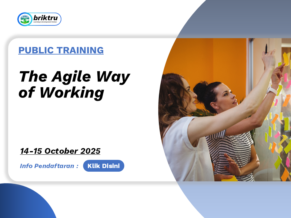 « All Events The Agile Way of Working October 14, 2025 @ 8:00 am - October 15, 2025 @ 5:00 pm « Analytical Thinking and Problem Solving Design Thinking For Business Innovation » + Google Calendar+ iCal Export Details Start: October 14, 2025 @ 8:00 am End: October 15, 2025 @ 5:00 pm Event Category: Public Training Event Tags:event Organizer Briktru Indonesia Phone: 0813-2929-4899/0812-4614-4044