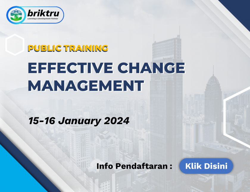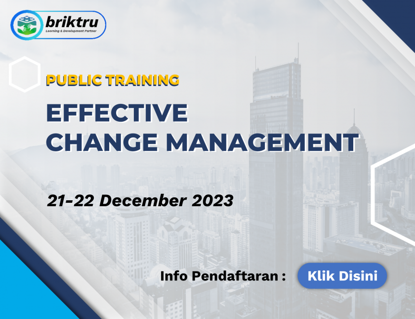 Memampukan partisipan untuk mengenali dan mengaplikasikan ketrampilan mengelola perubahan secara stratejik dan operasional sehingga dapat terlibat dalam inisiatif dan proses perubahan di area kerjanya. Registrasi